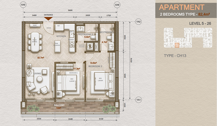 Bán căn 2PN dự án The Legend, căn góc đẹp nhất các căn 2PN trục 02 tầng cao, qũy ngoại giao CĐT