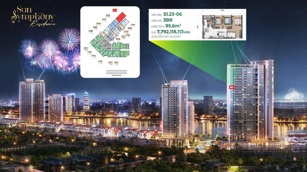 Bán căn hộ chung cư 97m2 Sun Symphony Residence, Nại Hiên Đông, Sơn Trà, Đà Nẵng, tầm view đẹp