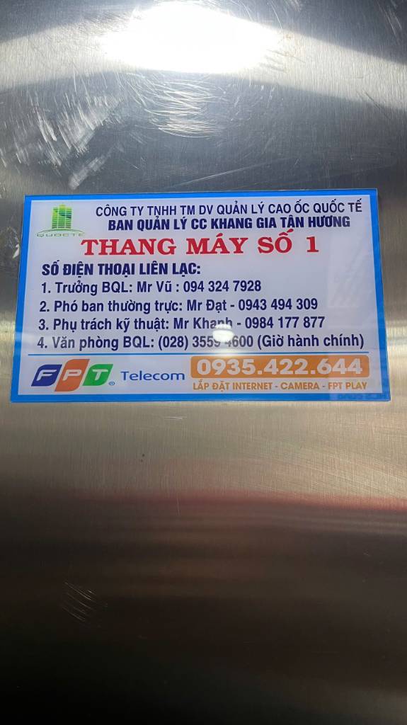 CHUNG CƯ KHANG GIA TÂN HƯƠNG, CÓ THANG MÁY, GIÁ 1,45TỶ