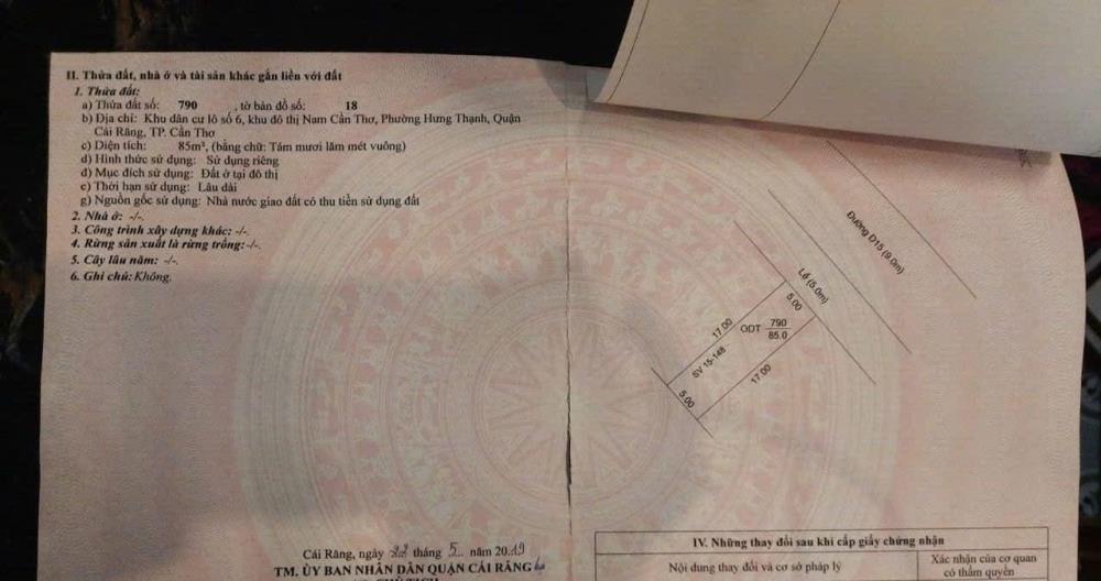 Bán đất nền dự án 85m2 tại KDC Hồng Loan, Phường Hưng Thạnh, Cái Răng, Cần Thơ