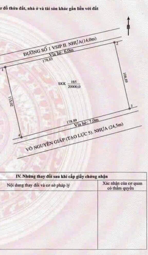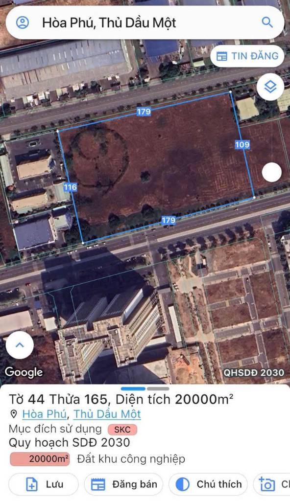 Bán đất KCN Vsip 2, phường Hòa Phú, tp Thủ Dầu Một, 20000m2, giá 200 tỷ