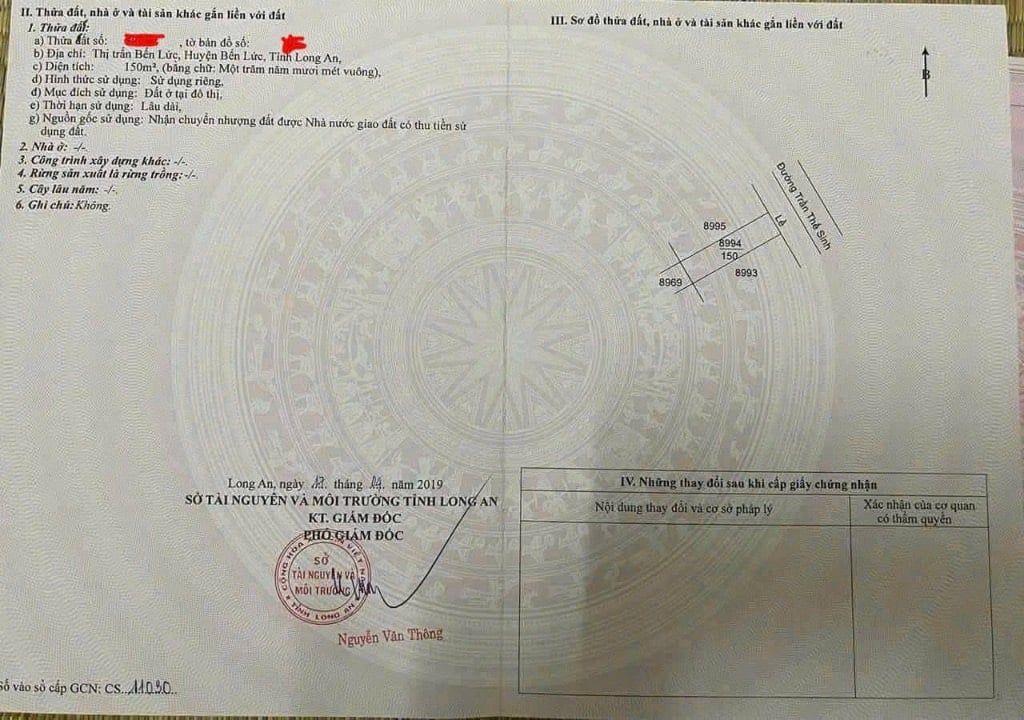 BÁN ĐẤT NỀN MẶT TIỀN TRẦN THẾ SINH, BẾN LỨC, KẾ QL1A 150M2, CHỈ 1 TỶ 320 TRIỆU