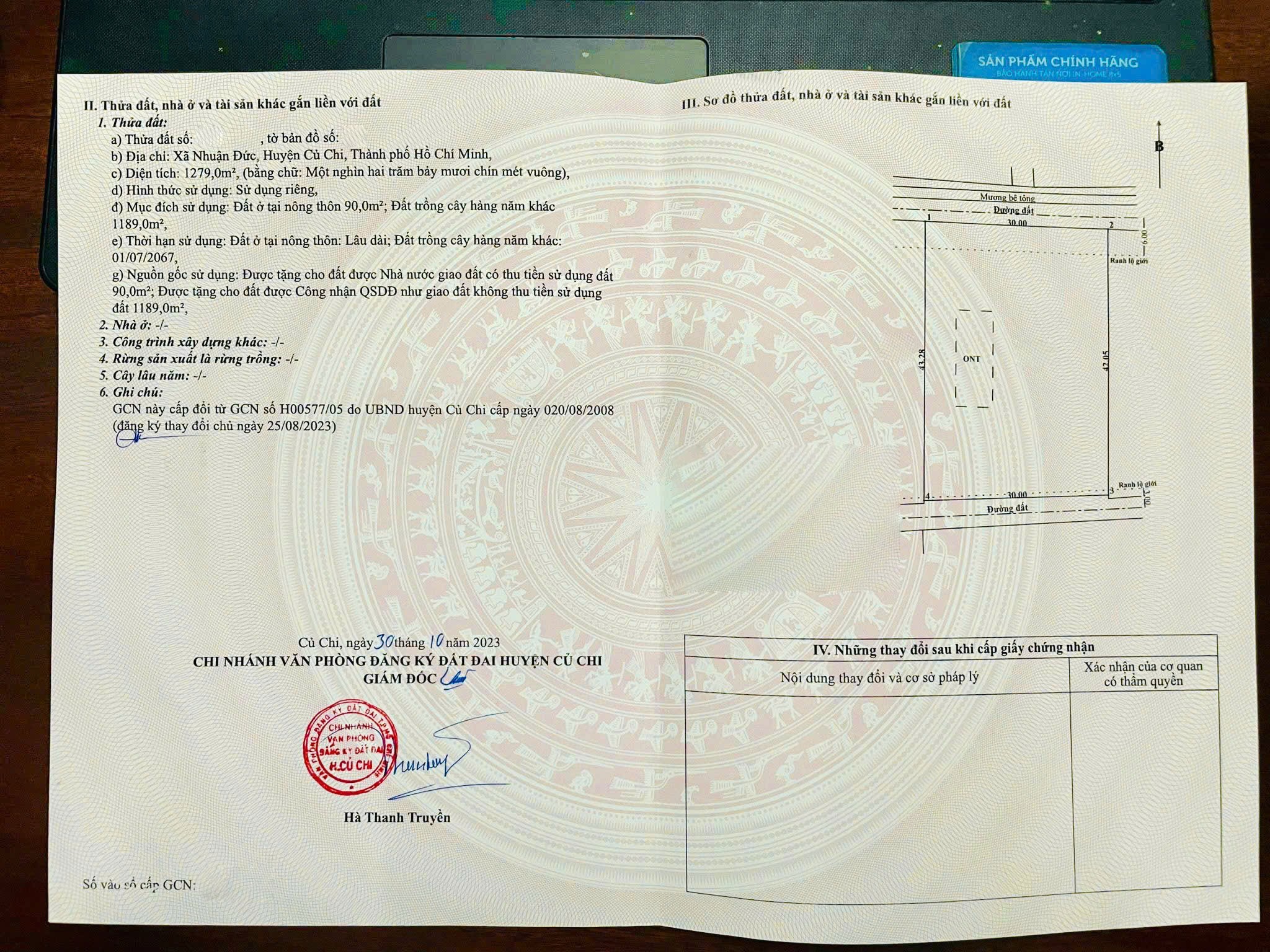 Bán đất 1/ đường 531 30x43m Nhuận Đức Củ Chi 90m2 thổ cư