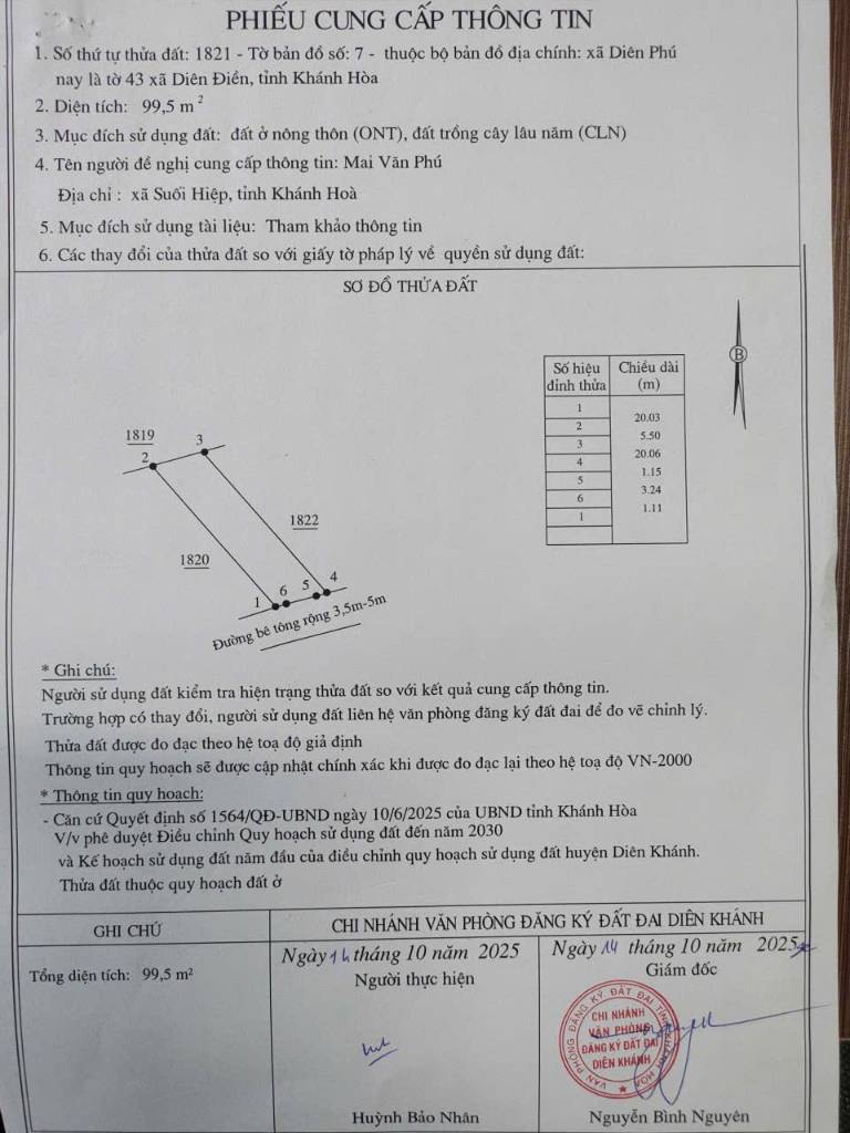 Bán 2 lô đất Diên Phú, Diên Khánh, thổ cư liền kề trong lòng dân cư, giá rẻ, cách Nha Trang 7km
