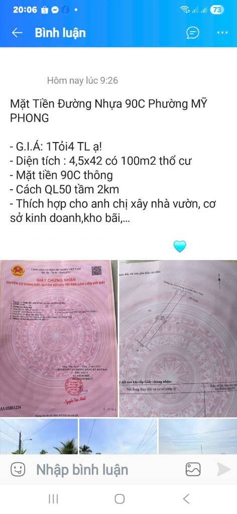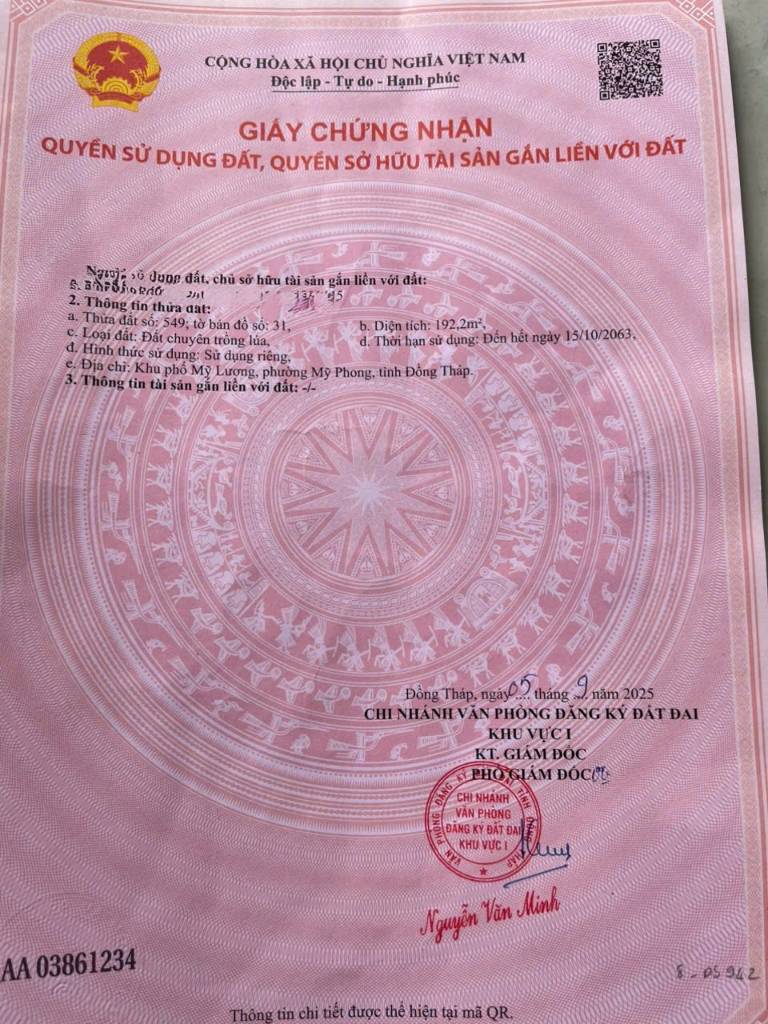 Lô đất MẶT TIỀN Đường Huyện 90C Phường MỸ PHONG. MỸ THO CŨ