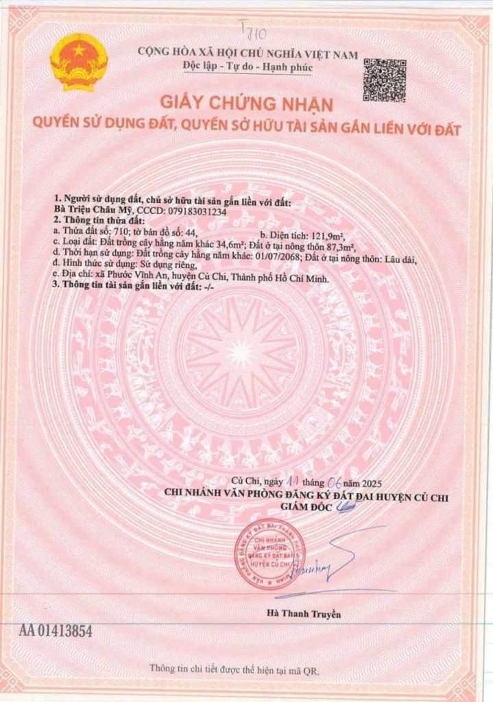 Bán đất MT đường nhựa 405, Phước Vĩnh An Củ Chi, dt 121m², nở hậu 8,6m, giá chỉ 1,7 tỷ