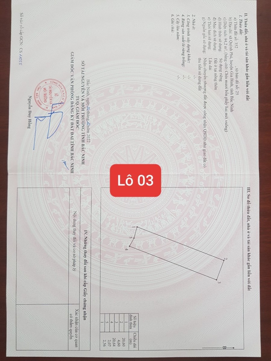 Bán lô đất 93 m2 Quốc Lộ 17 Quỳnh Phú Gia Bình Bắc Ninh gần KCN Gia Bình