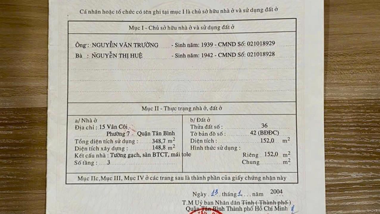 Bán nhà mặt tiền 15 Vân Côi , Phường 7, Quận Tân Bình, sổ hồng chính chủ