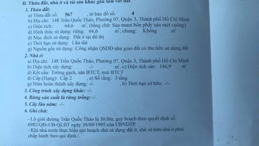 Bán nhà mặt tiền 148 Trần Quốc Thảo, Phường 8, Quận 3, giá tốt, thu nhập ổn định