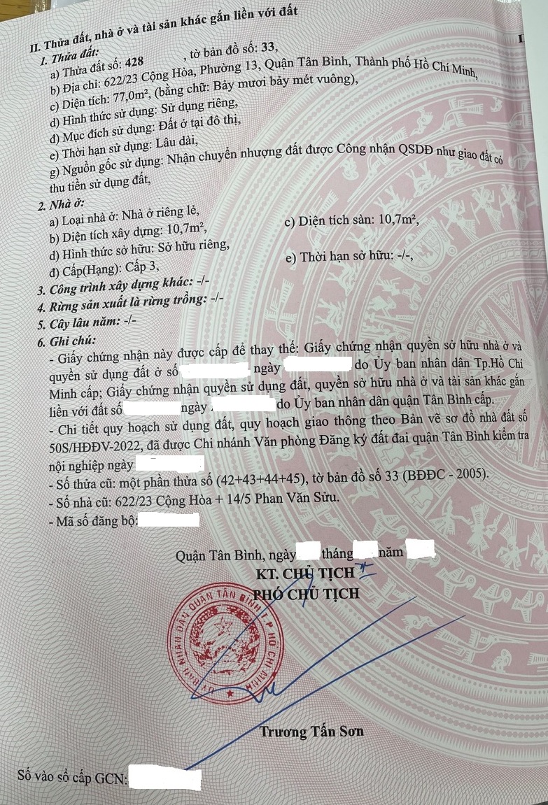 Bán nhà riêng 2 mặt tiền đường Cộng Hòa Quận Tân Bình 77m2 giá 10.5 tỷ