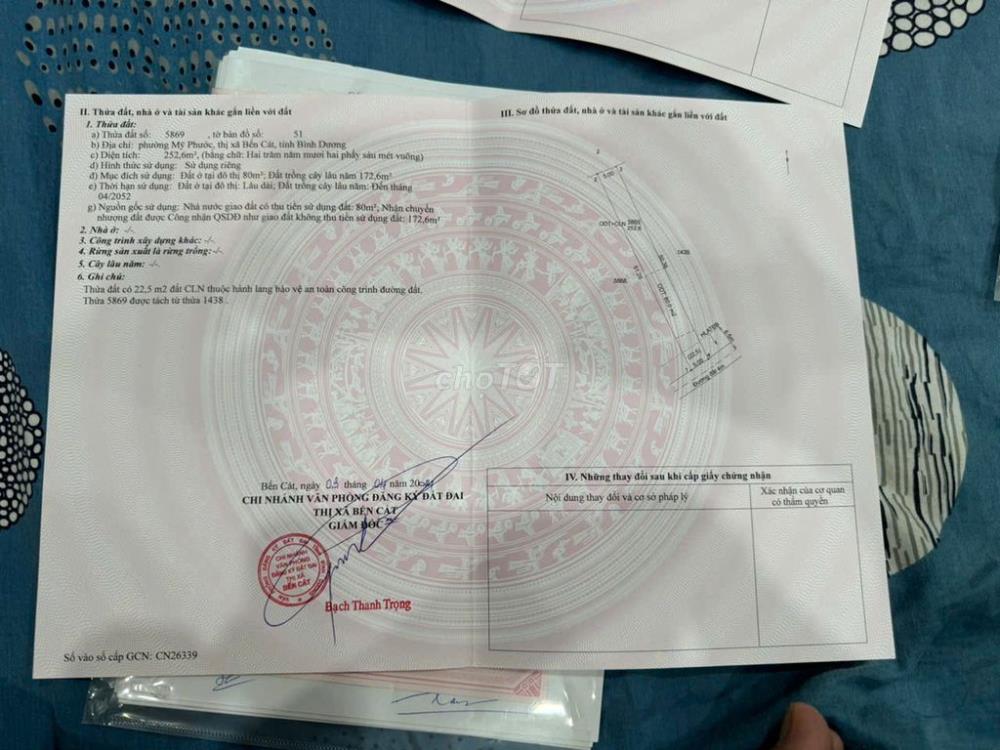 Bán (15x55=770m2) phường Mỹ Phước Bến Cát Bình Dương 1,2 tỷ