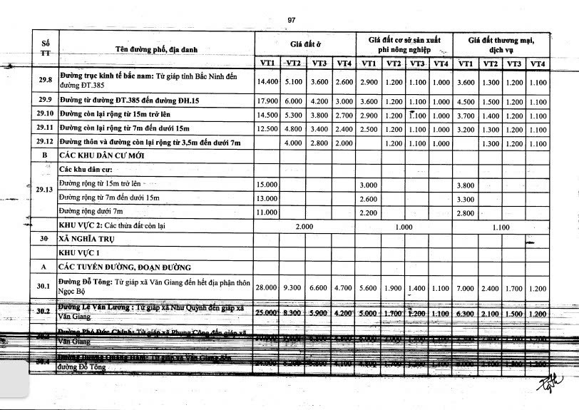 Bảng giá đất xã Nghĩa Trụ Hưng Yên 2026 mới nhất