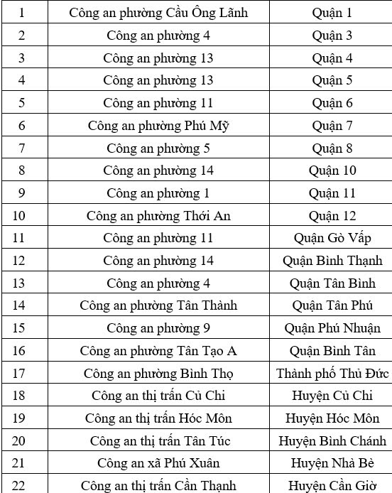 Danh sách 22 điểm phường, xã, thị trấn tiếp nhận hồ sơ đổi, cấp lại GPLX tại TPHCM như sau: