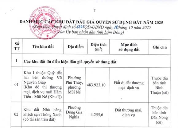 Ngày 18 tháng 10 năm 2025, Ủy ban nhân dân tỉnh Lâm Đồng đã ban hành Quyết định 1761/QĐ-UBND năm 2025 về việc ban hành Kế hoạch và danh mục các khu đất thực hiện đấu giá quyền sử dụng đất năm 2025 đối với quỹ đất do Trung tâm Phát triển quỹ đất tỉnh quản lý.