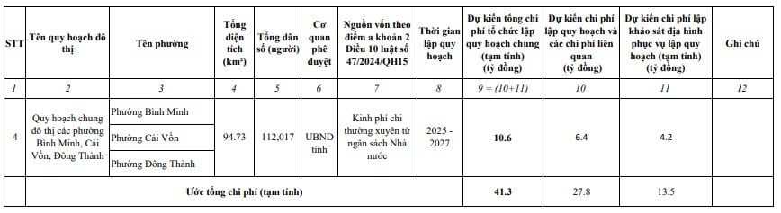 (4) Dự toán trên chỉ mang tính chất tạm tính, chi phí sẽ được xác định cụ thể trong quá trình lập nhiệm vụ quy hoạch, đảm bảo phù hợp Thông tư 17/2025/TT-BXD ngày 30/6/2025 và các quy định khác có liên quan.