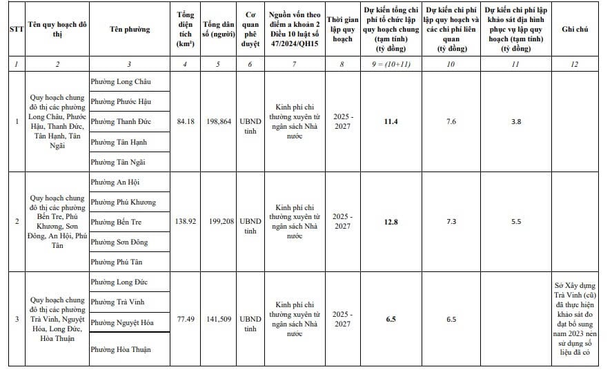 (*) Trên đây là danh mục lập quy hoạch chung đô thị hiện hữu tỉnh Vĩnh Long
