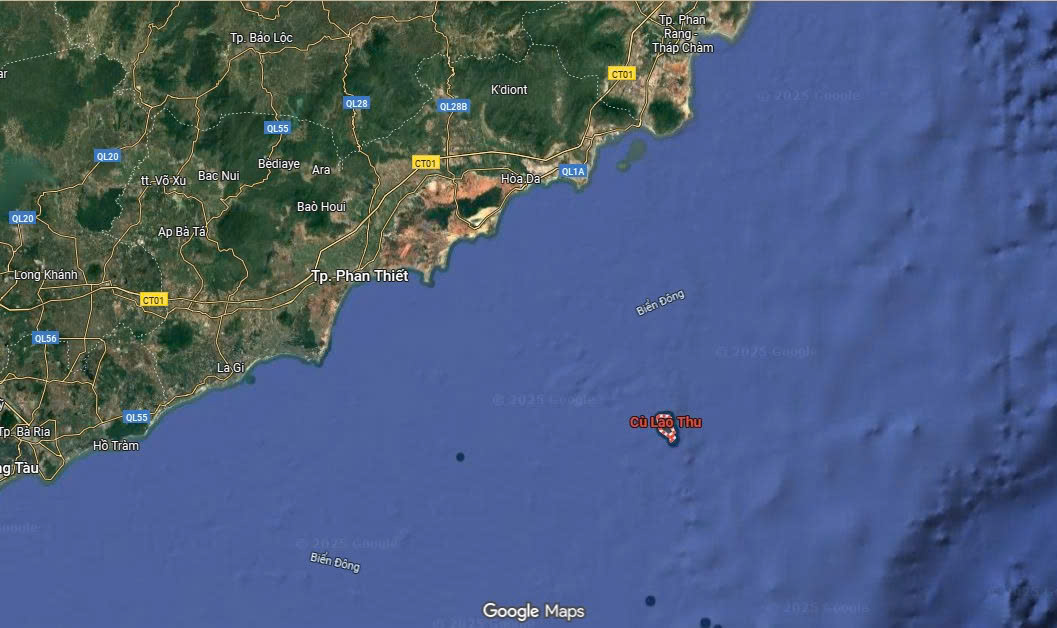 Cách thành phố Phan Thiết khoảng 56 hải lý (tương đương 102km - 120km) về hướng Đông Nam.