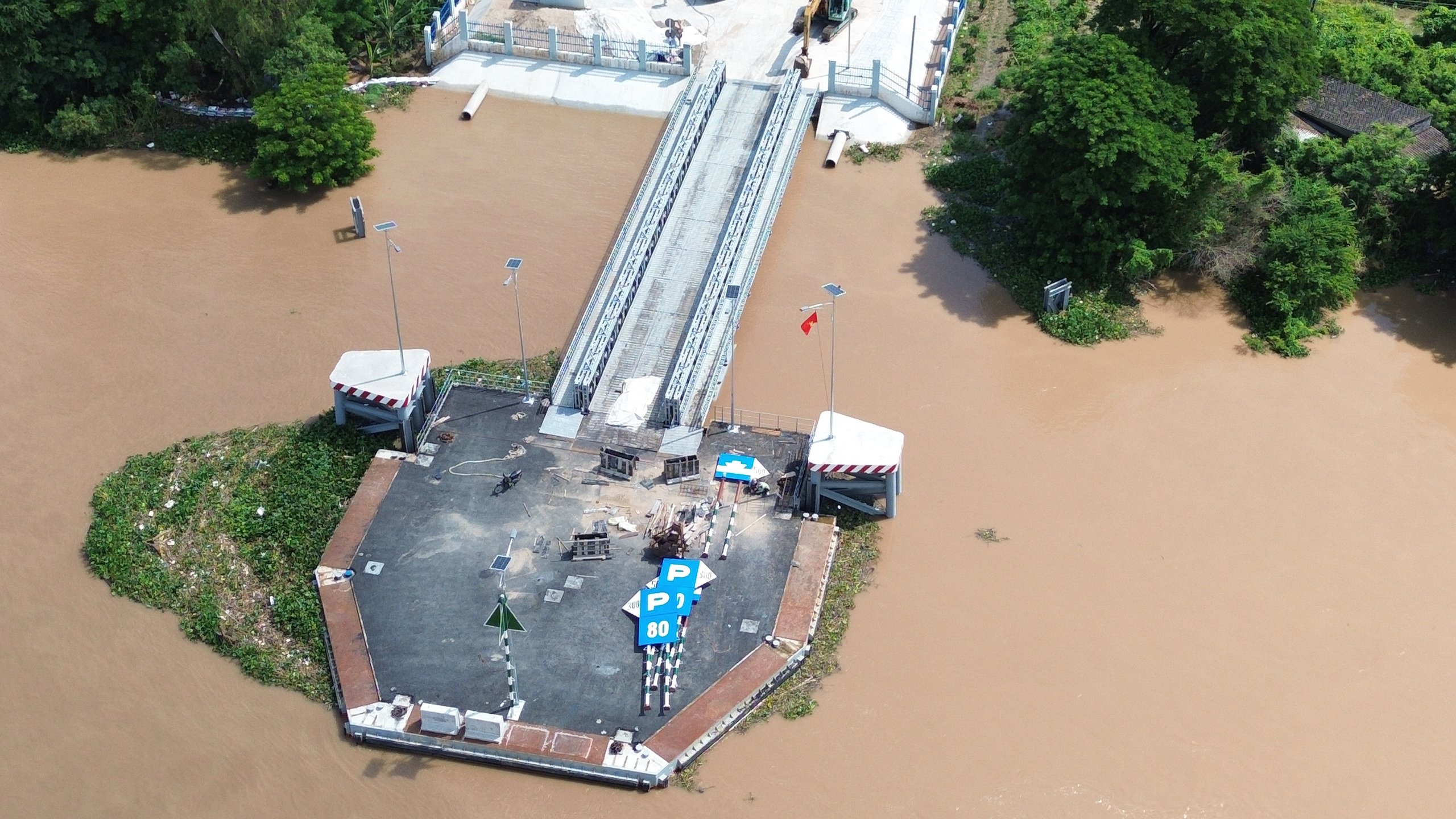 Hiện tại, cầu phao (ponton), đường dẫn xuống bến phà đã hoàn thành, tuy nhiên, chưa hoàn thiện về một số hạng mục như lắp đặt các biển báo, phụ trợ và an toàn giao thông.