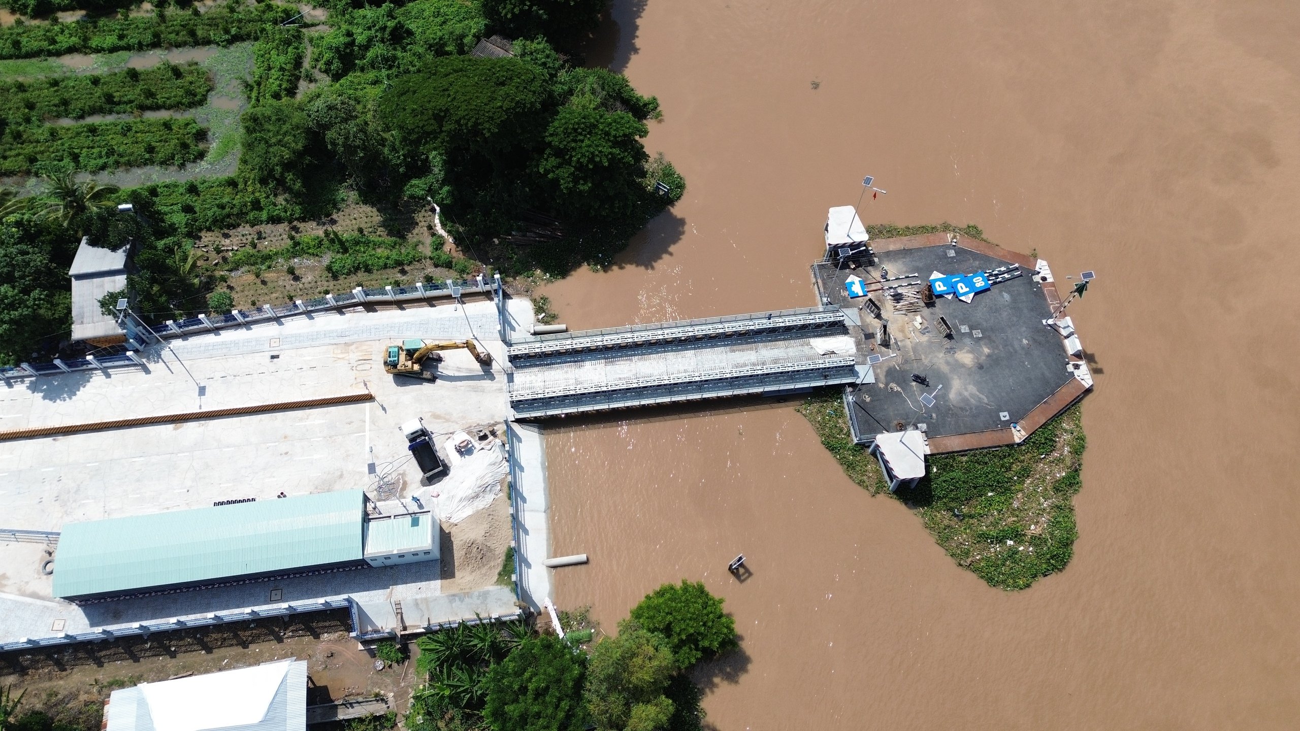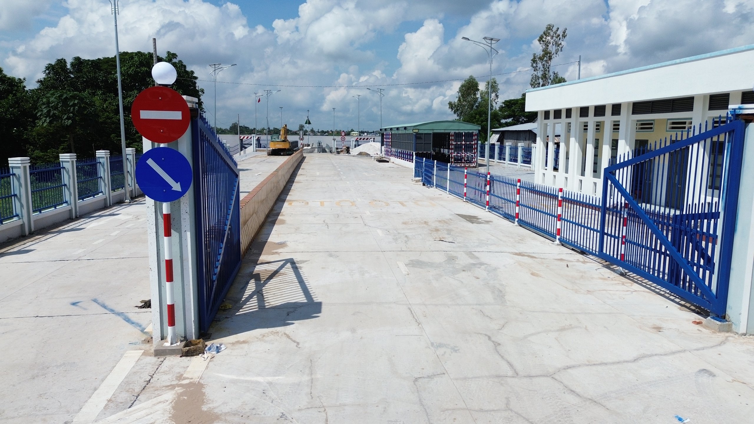 Khu vực nhà điều hành, địa điểm bán vé và khu vực giao thông cho xe di chuyển và xe chờ lên phà đã được xây dựng hoàn thành, sẵn sàng đưa vào khai thác.