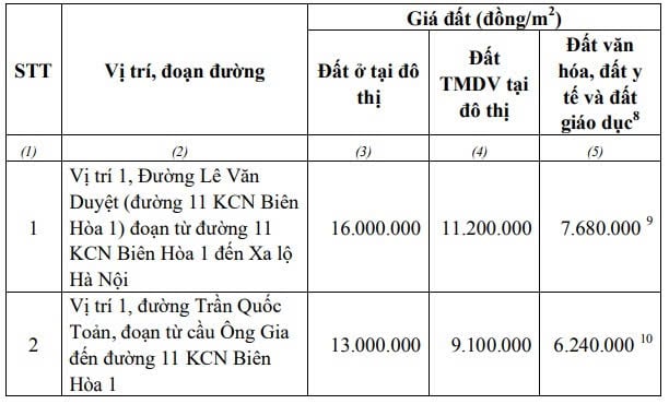 Giá khởi điểm đấu giá đất Khu đô thị thương mại dịch vụ (khu vực 1) tại phường Trấn Biên (Hình từ Internet)