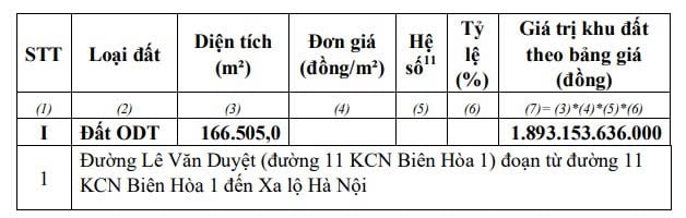 Giá khởi điểm đấu giá khu đất sẽ được Chủ tịch UBND tỉnh Đồng Nai phê duyệt chính thức trên cơ sở áp dụng điểm d khoản 1 Điều 160 của Luật Đất đai 2024.