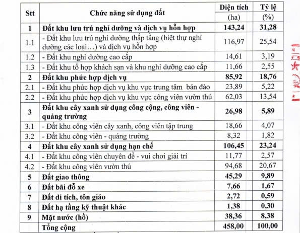 - Nội dung chi tiết về diện tích, phân khu các khu vực được thể hiện theo Thuyết minh và bản vẽ quy hoạch.