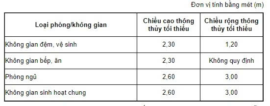 + Chiều rộng thông thủy của cửa ra vào chính của công trình/căn hộ, lối đi không nhỏ hơn 0,90 m. Đối với cửa ra vào các phòng chức năng không nhỏ hơn 0,80 m