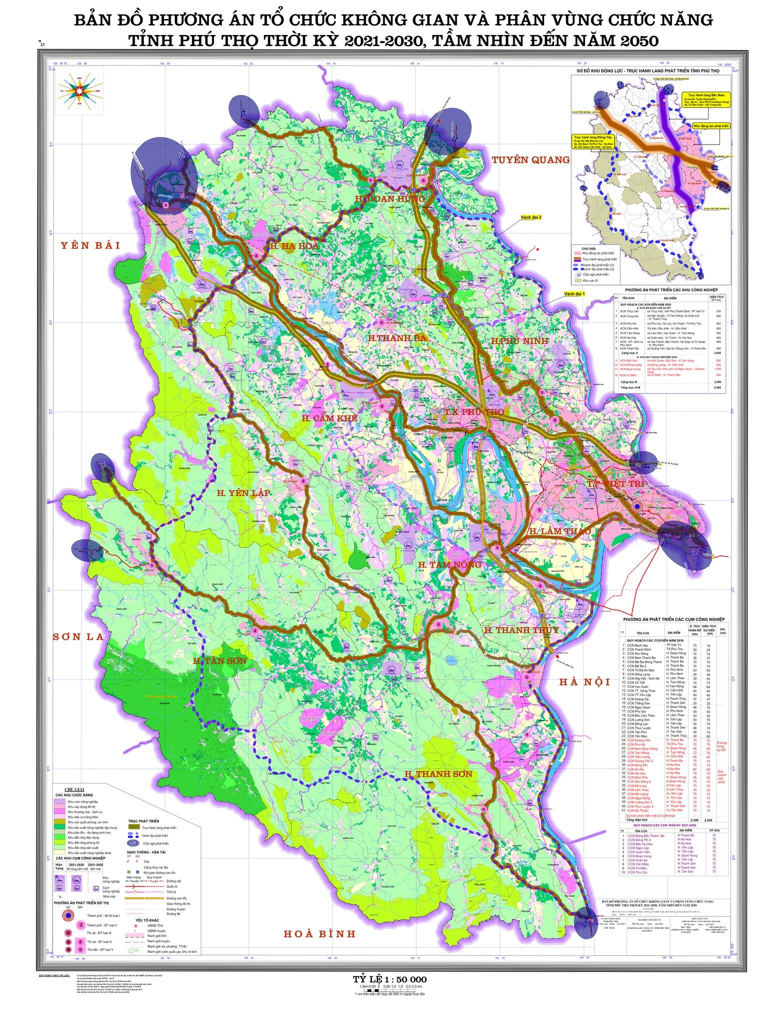 Bản đồ phương án tổ chức phân vùng chức năng Phú Thọ thời kỳ 2021- 2030, tầm nhìn đến năm 2050