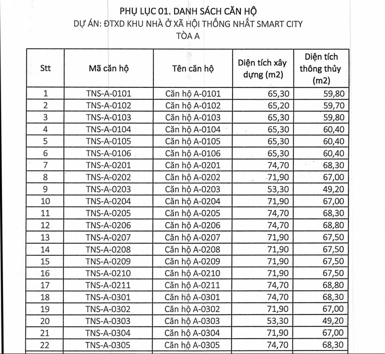 [1] Tên dự án: Khu nhà ở xã hội Thống Nhất Smart City.