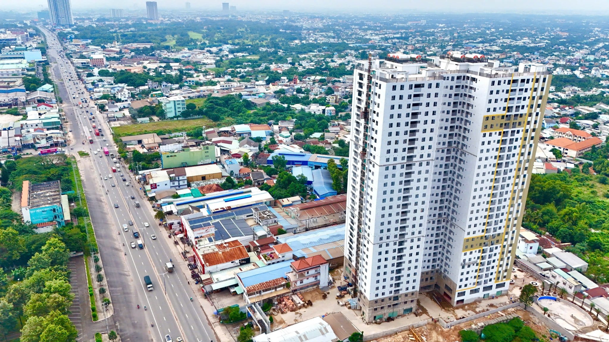 Đang trong giai đoạn hoàn thiện hạ tầng xung quanh dự án (cảnh quan, đường nội bộ, tiện ích ngoài trời).