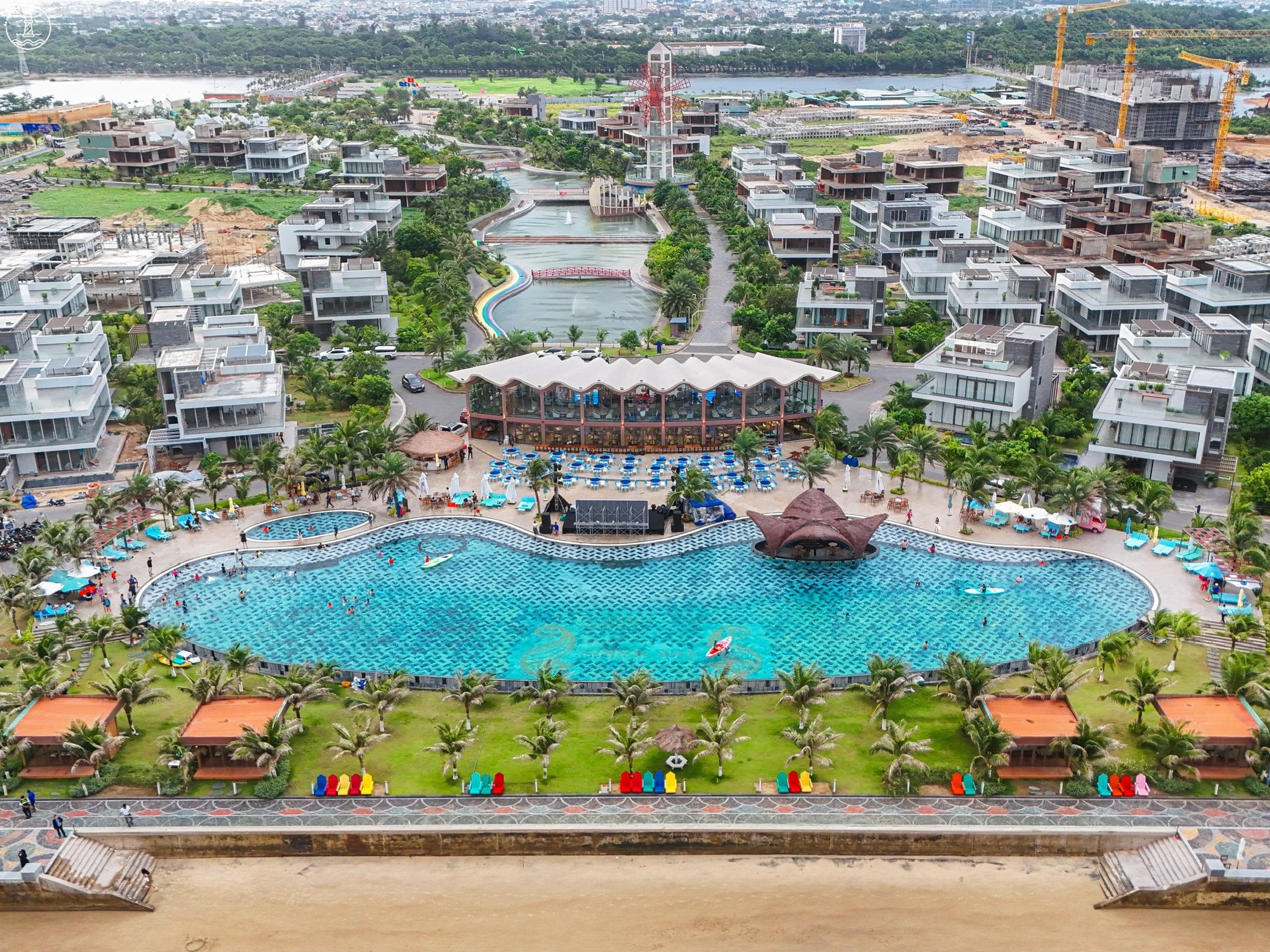 Cuối cùng là các hang mục quan trọng như cổng chảo, hồ bơi, hồ cảnh quan, nhà hàng.. . cũng đã được hoàn thành.
