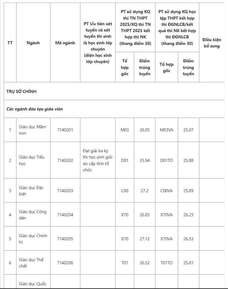 Điểm chuẩn trường Đại học Sư phạm TPHCM 2025 (HCMUE) xem chi tiết dưới đây: