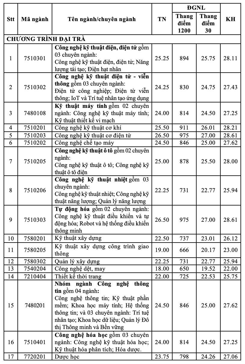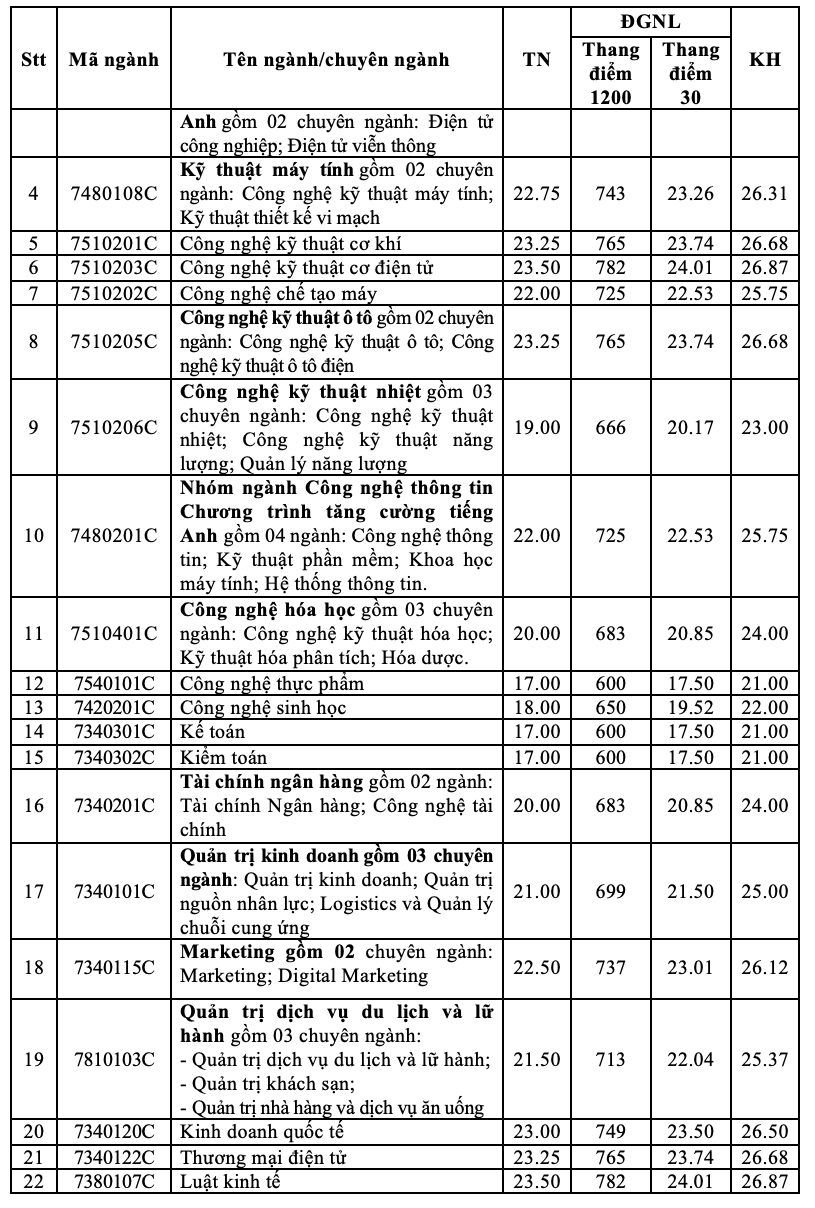 Dưới đây là thông tin về điểm chuẩn trường Đại học Công nghiệp TPHCM 2025: