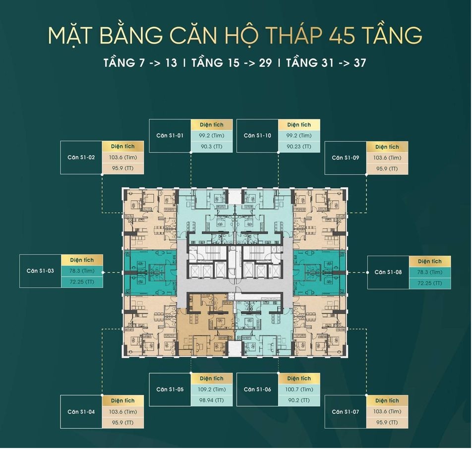 Số tầng: 2 tòa tháp cao 45 và 50 tầng