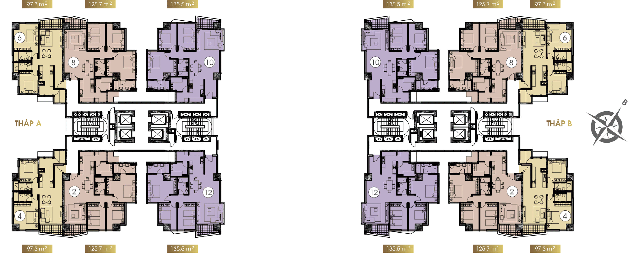 Quy mô dự án: 2 Tháp A và B, cao 36 tầng nổi, 2 tầng hầm