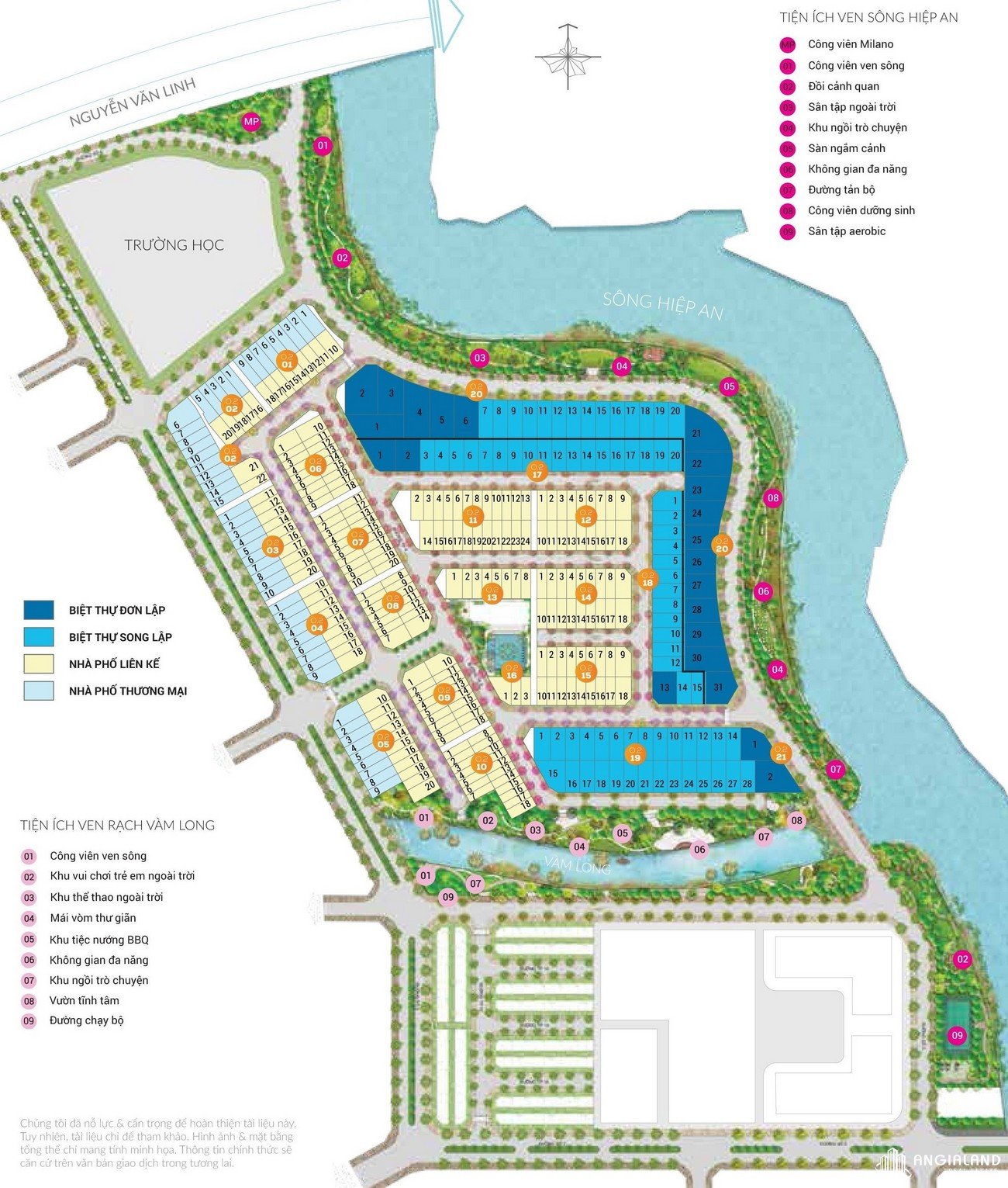 Loại hình: Biệt thự đơn lập, biệt thự song lập, nhà phố liên kế, nhà phố thương mại, khu căn hộ cao tầng