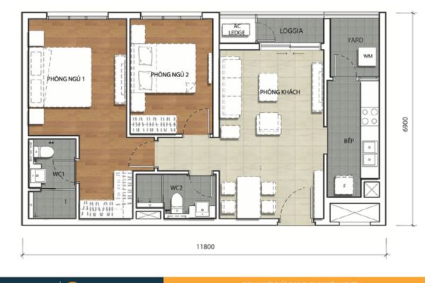 Căn hộ 2 phòng ngủ: 71 – 82m²