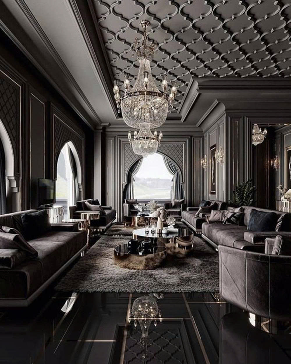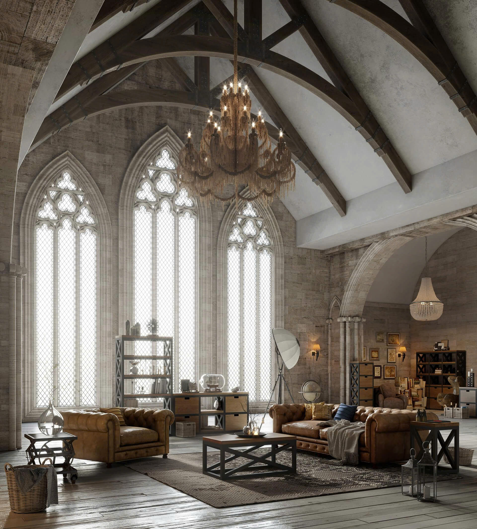 Đặc trưng của phong cách Gothic là việc sử dụng gam màu trầm, họa tiết dạng vòm, nội thất mang đường cong phức tạp và chất liệu như gỗ tối màu, kim loại đen hoặc đá. Không gian được tạo dựng nhằm gợi cảm giác uy nghi, cổ điển nhưng vẫn có chiều sâu thẩm mỹ.