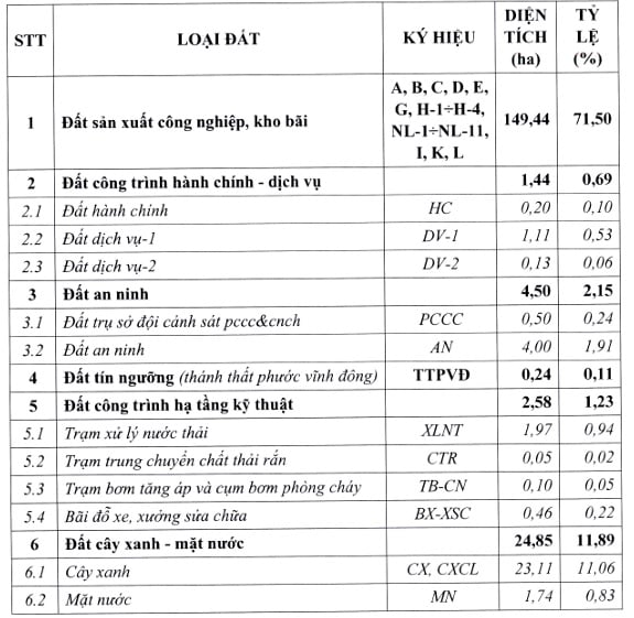 - Tổng diện tích đất khu nhà máy xí nghiệp là 149,44 ha chiếm khoảng 71,50% diện tích đất toàn Khu công nghiệp.