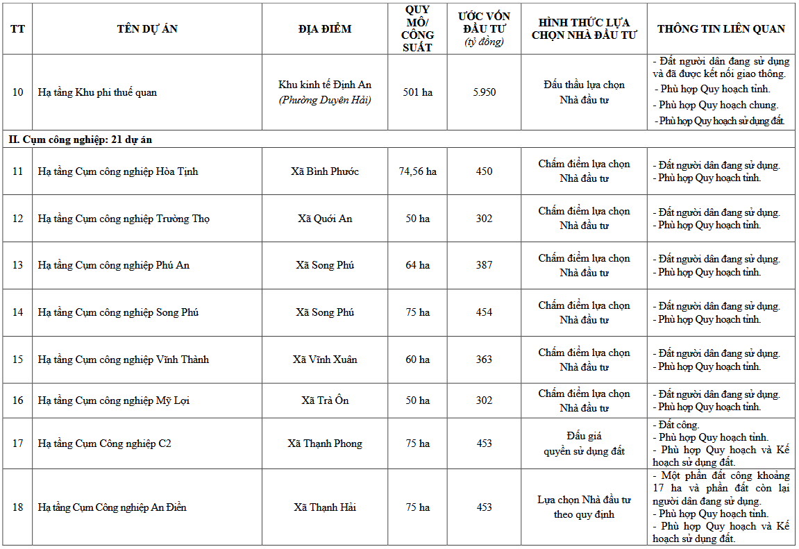 >>> Xem chi tiết: Danh mục 78 dự án trọng điểm mời gọi đầu tư tại Vĩnh Long giai đoạn 2025 2030