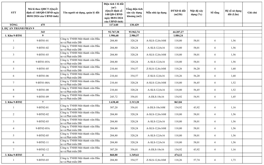 + Dự án thành phần 9: 343 căn;