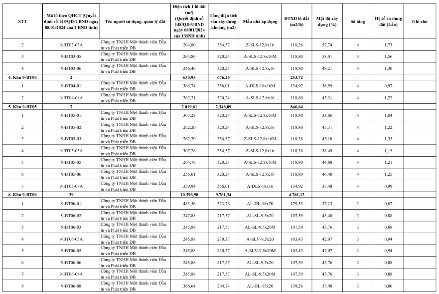 + Dự án thành phần 6-1: 132 căn;
