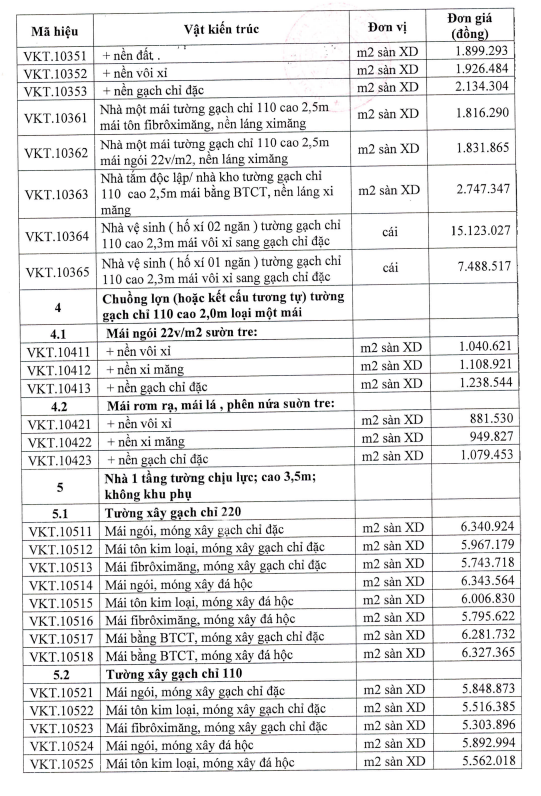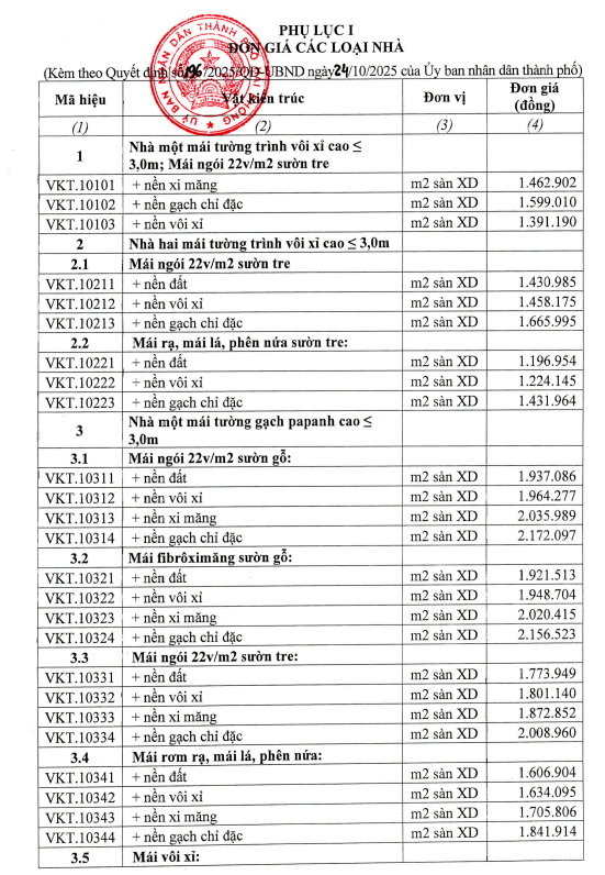 >>> Xem rõ hơn: Đơn giá bồi thường các loại nhà khi thu hồi đất tại Hải Phòng tại Phụ lục I ban hành kèm theo Quyết định 196/2025/QĐ-UBND
