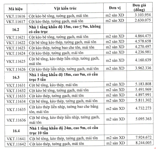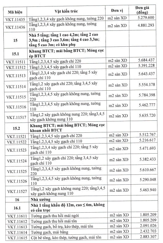 - Các đơn giá có mã hiệu từ VKT.11611 đến VKT.11642 đã bao gồm: Cửa các loại; sơn, bả tường, hệ thống điện chiếu sáng.