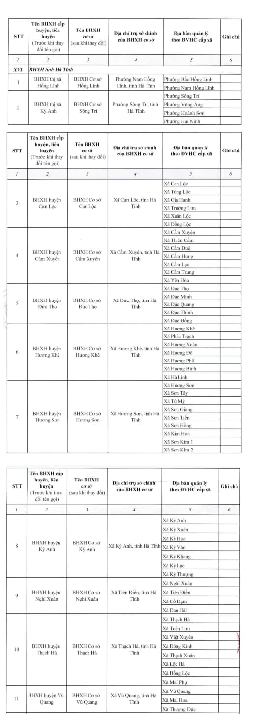 Trên đây là danh sách tên gọi và địa chỉ BHXH cơ sở thuộc BHXH Hà Tĩnh sau sáp nhập