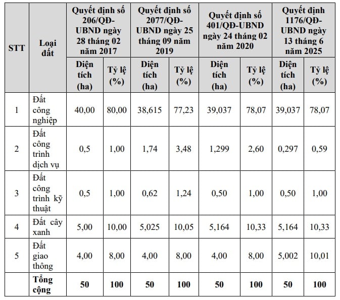 Bảng cơ cấu sử dụng đất của Cụm công nghiệp Gia Thuận 1 tỉnh Đồng Tháp
