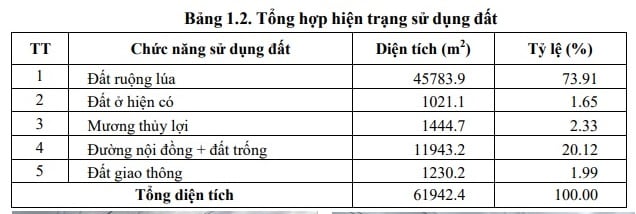 - Tổng diện tích khu vực nghiên cứu lập quy hoạch 61942.4m2: