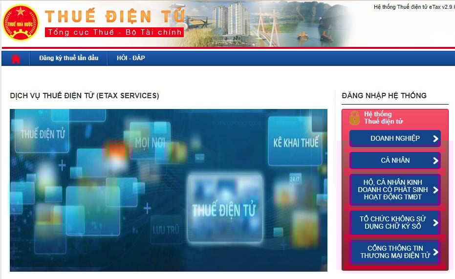 Bước 1: Đăng nhập vào hệ thống thuế điện tử