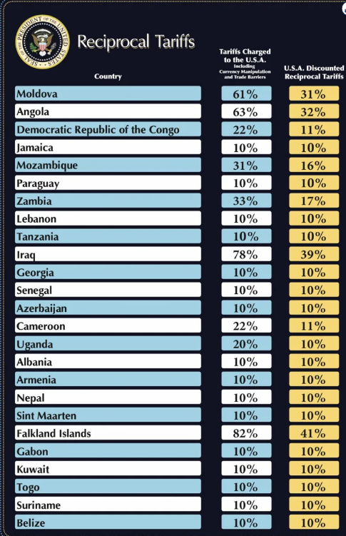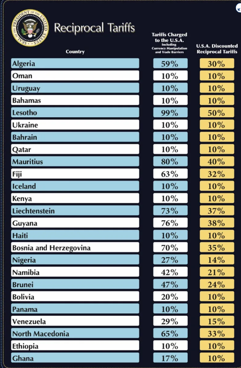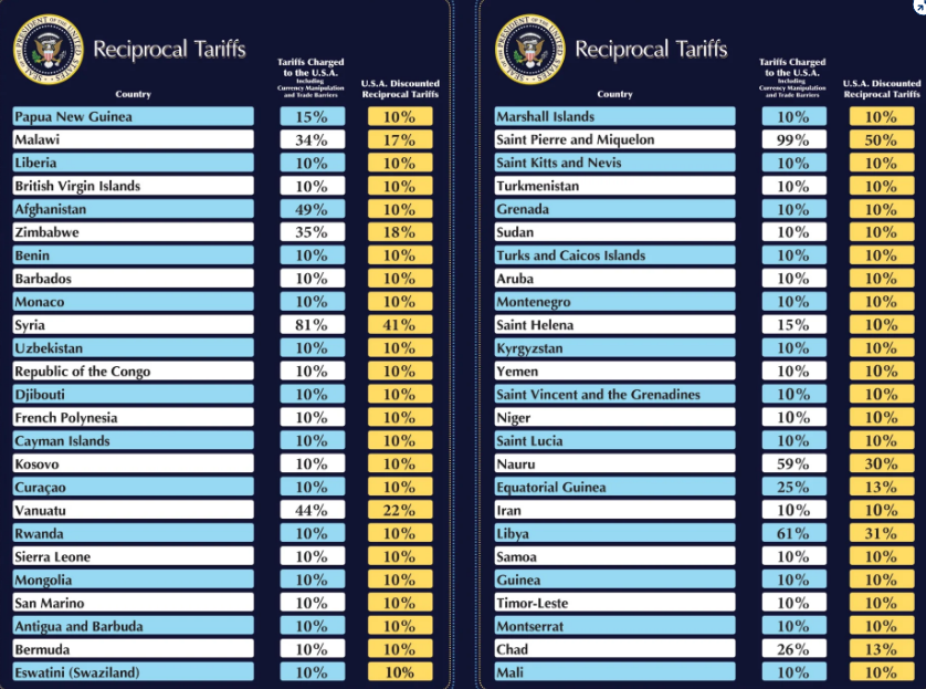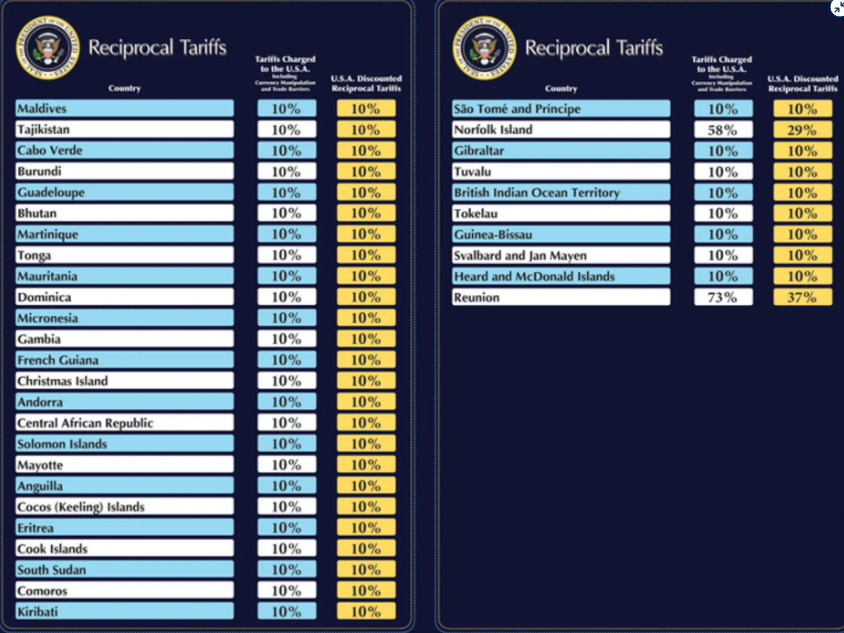 Trên đây là Danh sách 180 nước Mỹ áp thuế đối ứng ngày 2 4 2025? Những nước nào chịu thuế đối ứng từ Mỹ?