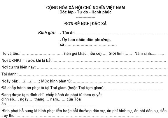 Đơn đề nghị đặc xá 30 tháng 4 năm 2025 là mẫu nào? (Hình từ Internet)
